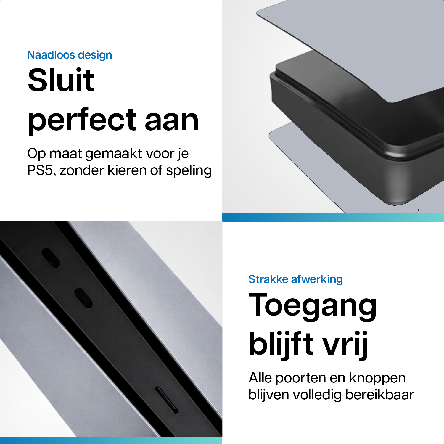 Zonder een mid-skin blijft het middelste gedeelte van je PlayStation 5 glanzend zwart. Daarom hebben wij er één bijgevoegd om je middenpaneel volledig matzwart te maken. Het aanbrengen is optioneel en vraagt iets meer tijd en geduld.