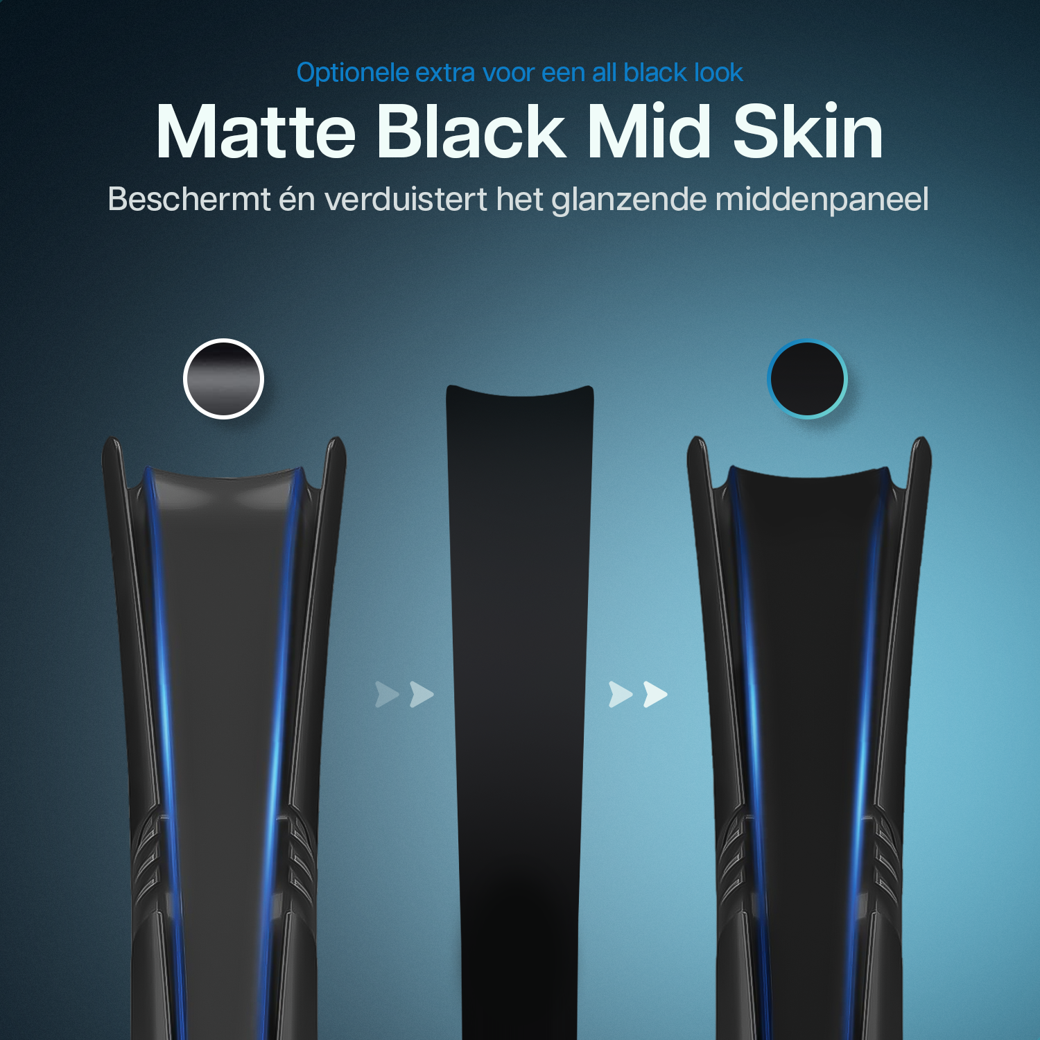 Zonder een mid-skin blijft het middelste gedeelte van je PlayStation 5 Pro glanzend zwart. Daarom hebben wij er één bijgevoegd om je console volledig matzwart te maken. Het aanbrengen is optioneel en vraagt iets meer tijd en geduld, maar geeft je wél de ultieme all-black look.