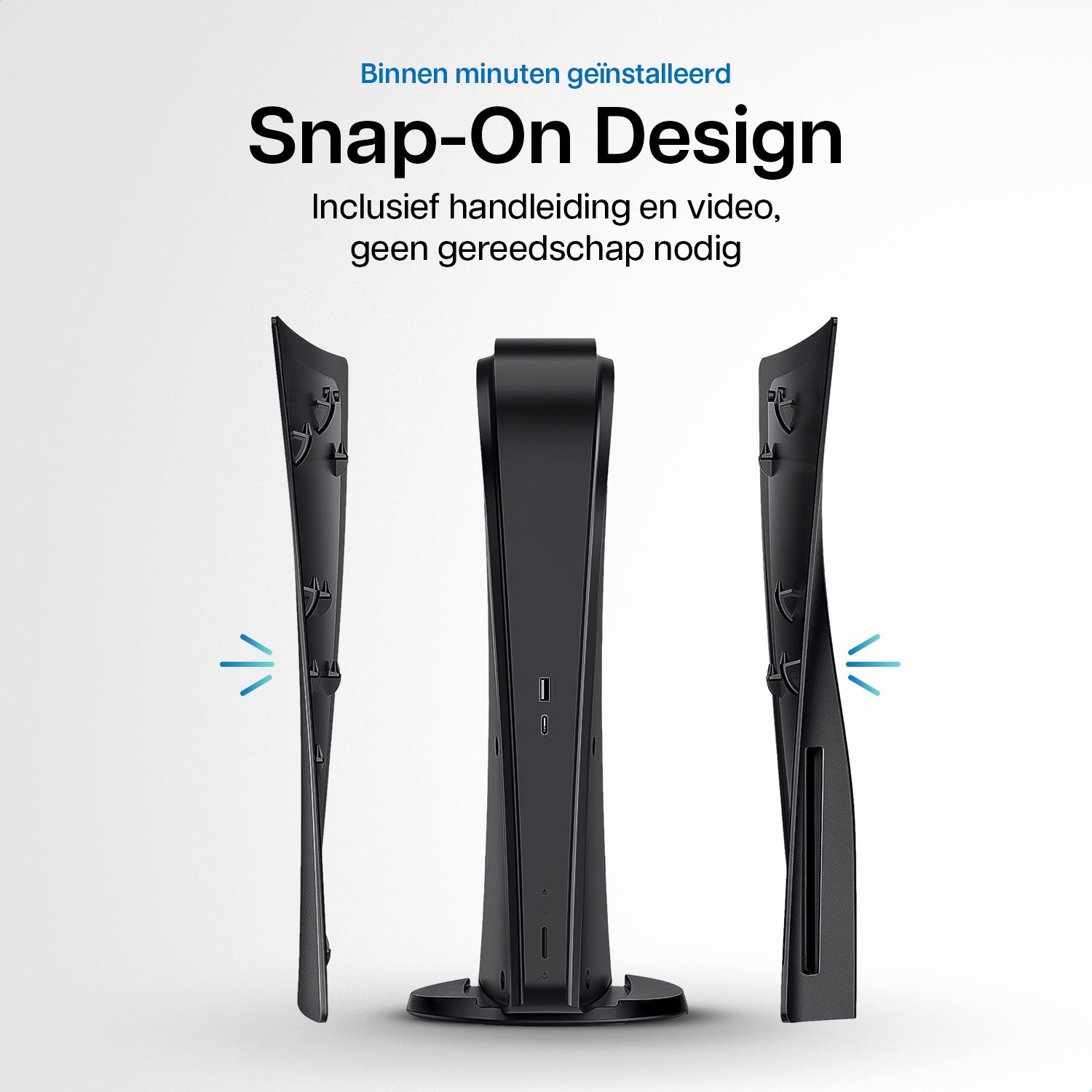 Past het witte design van de PlayStation 5 Slim niet bij je interieur? Of wil je gewoon de strakke matzwarte look? Met deze custom faceplates verander je jouw PS5 Slim in een stijlvolle blikvanger. De platen zijn kras-, stof- en vingerafdrukvrij en klikken eenvoudig op je console. Wil je de look echt compleet maken? Dan kun je optioneel de meegeleverde mid-skin gebruiken om ook het middelste gedeelte volledig matzwart te maken.