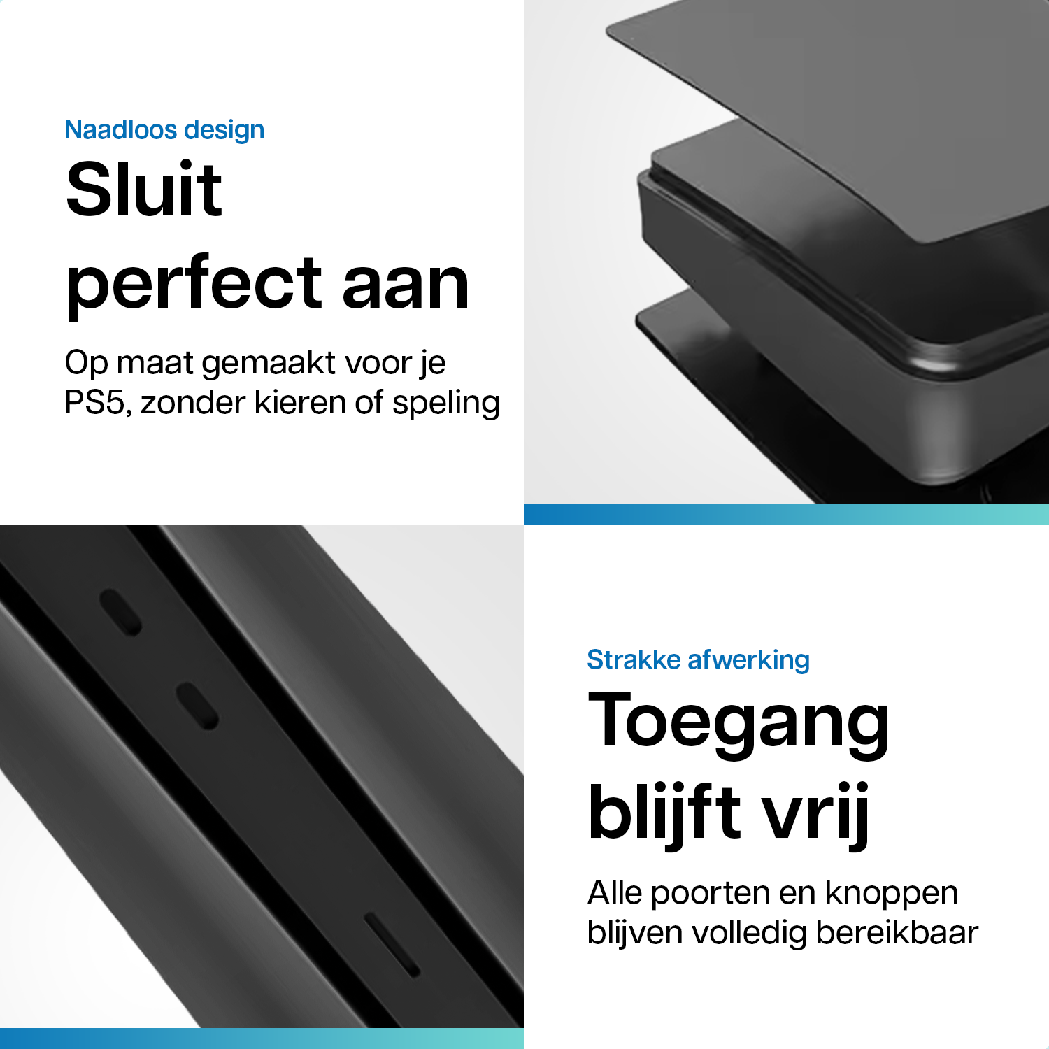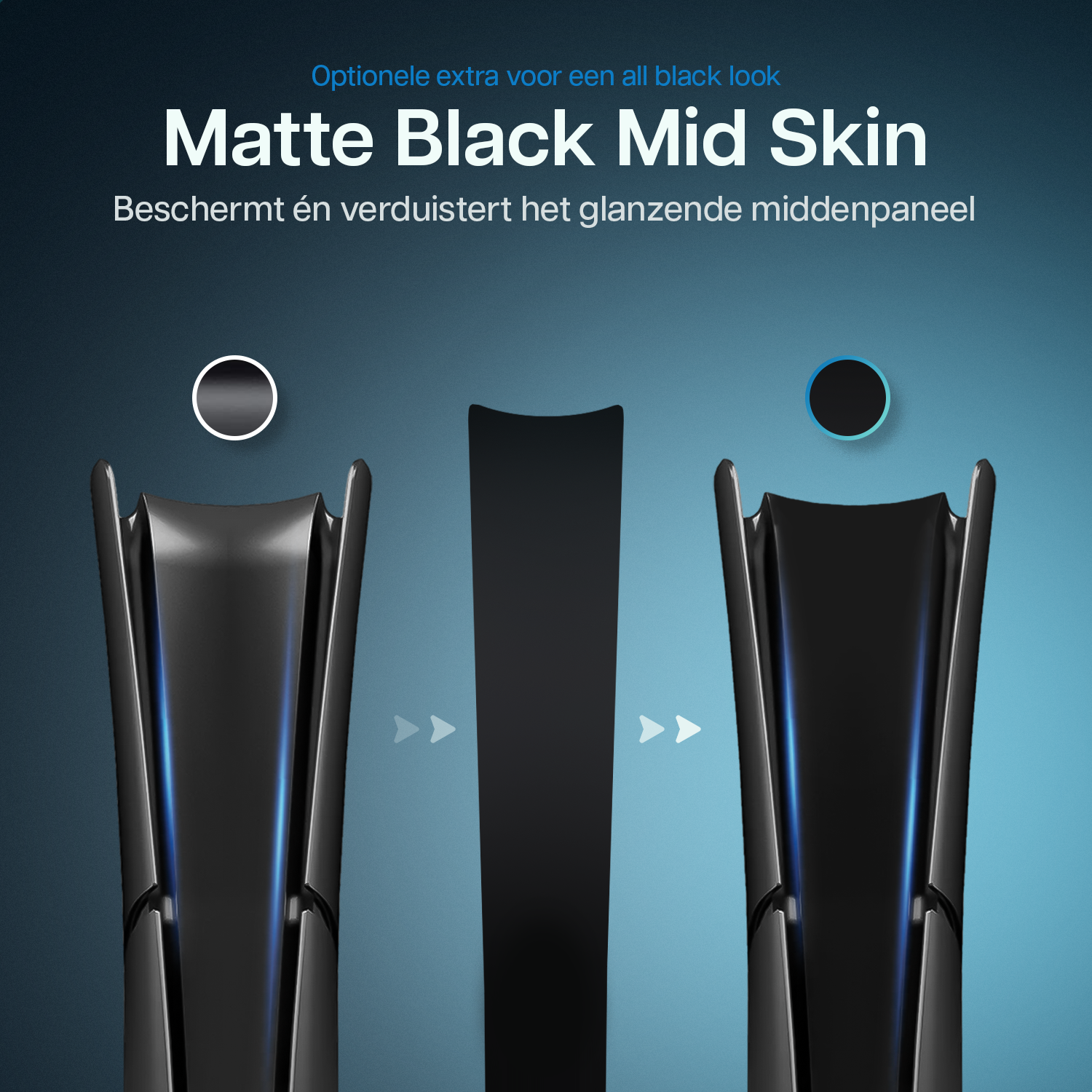 Zonder een mid-skin blijft het middelste gedeelte van je PlayStation 5 Slim glanzend zwart. Daarom hebben wij er één bijgevoegd om je console volledig matzwart te maken. Het aanbrengen is optioneel en vraagt iets meer tijd en geduld, maar geeft je wél de ultieme all-black look.